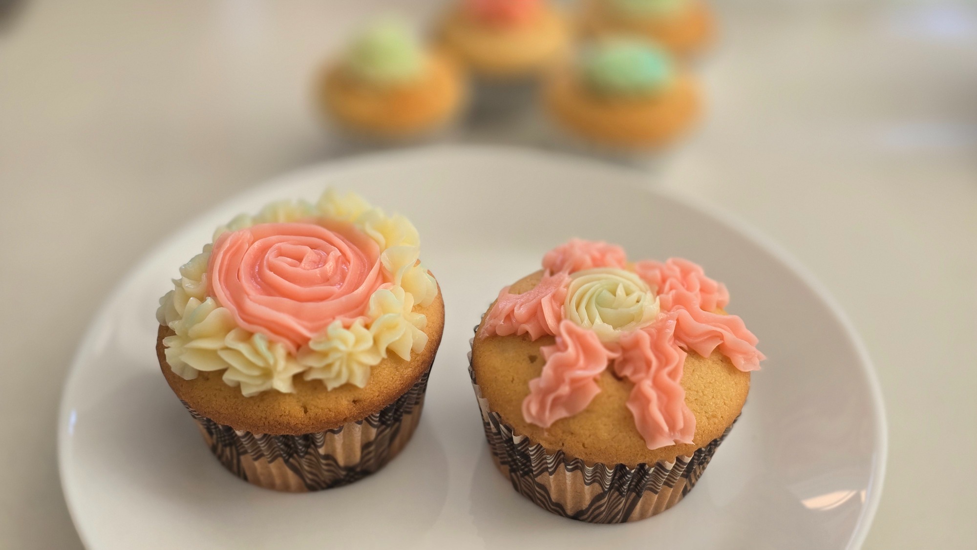 - 6 Peach and white Cupcakes